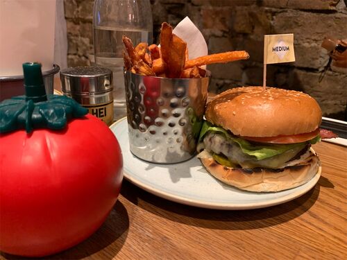 お友達オススメのバーガー屋さんということで、初訪問! Gourmet burger kitchen https://www.gbk.co.uk/location/cambridge?address 私はGBK beacon and cheeseとsideにsweet potato chipsを。(このchipsにはソースがつけられて、ガーリックマヨとベーコン…