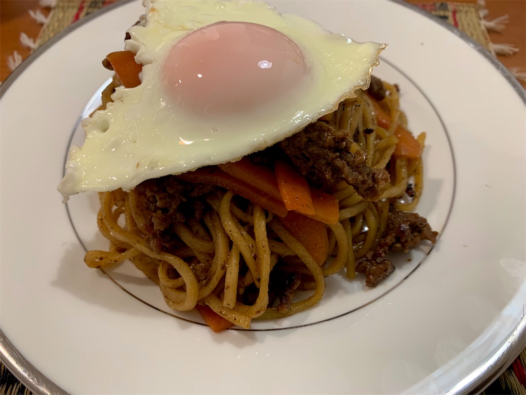 家に挽肉とニンジンがあったので炒め塩胡椒を加え、